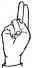 На ћирилици написано МИЛОСЛАВ ДРНДАРЕВИЋ састоји се из 18 слова [?]. Исписано ћириличном једноручном азбуком за глувонеме:
